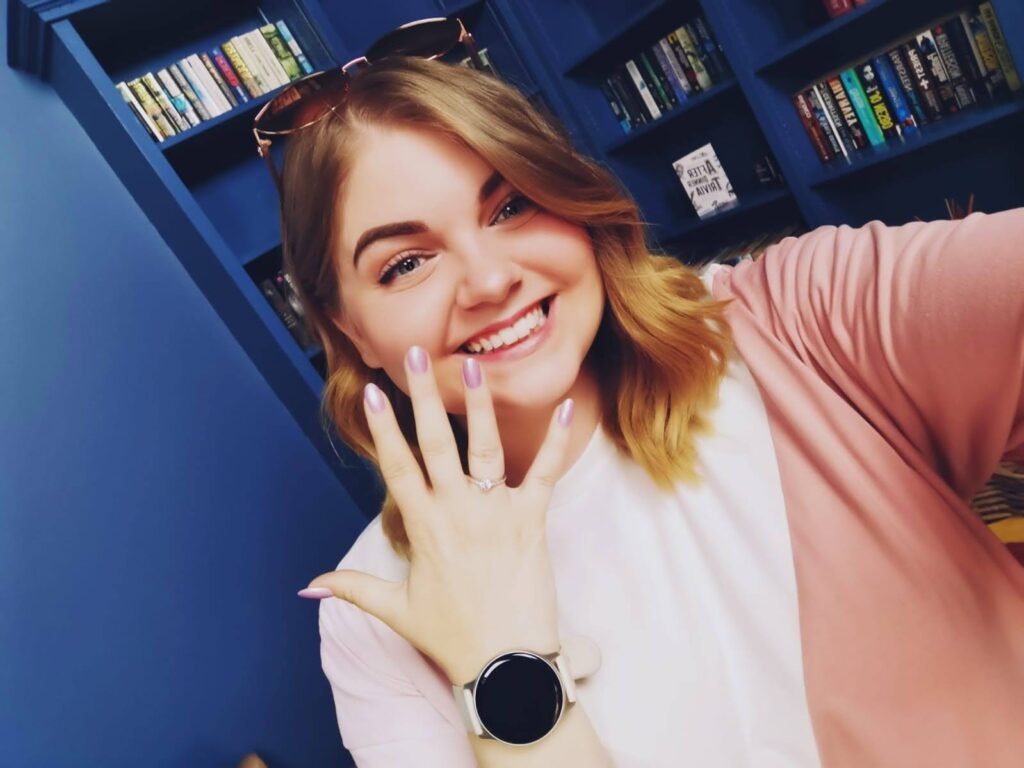 My eyes filled with tears, I can’t even see the box or ring, it’s blurred out as if I’m under water! I realise then, I can’t get any words out. I want to scream, “YES, GOD, YES!” but all I can do is frantically nod my head and pray that’s enough of a sign for now. I manage to squeak out a ‘yes’ as I fall straight into him, arms around him and many tears.